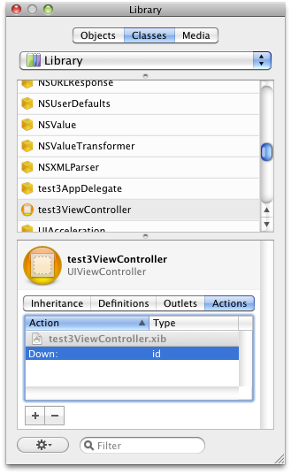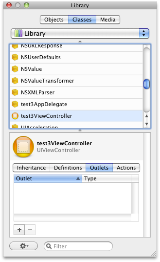 Library の Classes で test3ViewController を選択します。