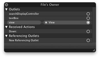 Outlets に追加(左下の+を押す)して名前を textBox にします。
